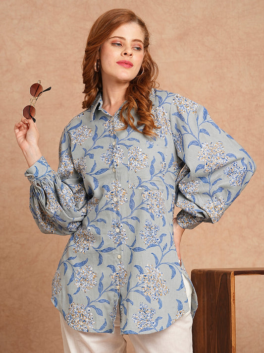 Abstract Foil Printed Straight Fit Shirt with Pant - Blue