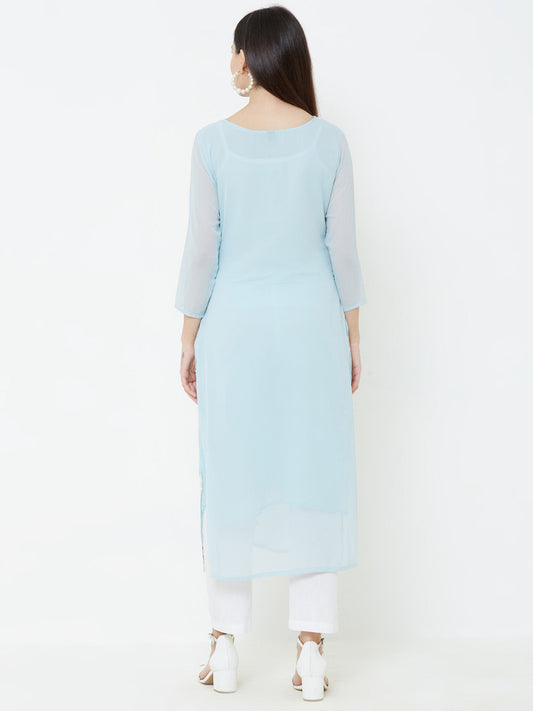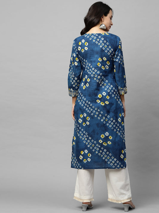 Bandhani Print & Sequins Embroidered Straight Kurta - Blue