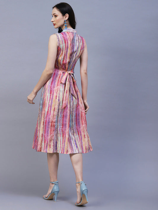Abstract Stripes Printed A-Line Midi Dress - Multi