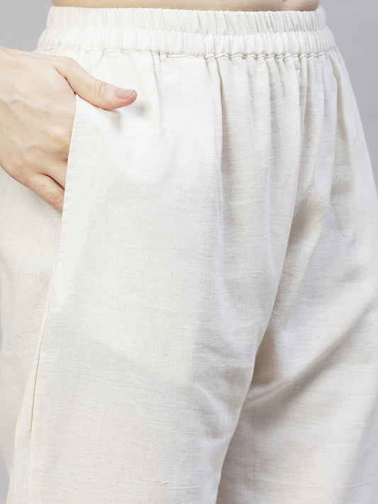 Solid Ethnic Embroidered Straight Fit Pant - Off White