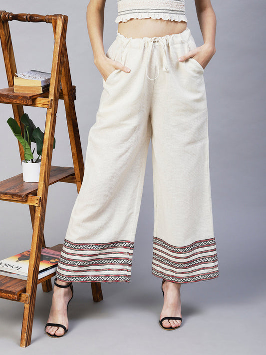 Solid Ethnic Woven Straight Fit Palazzo - Off White