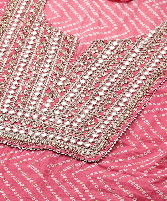 Bandhani Printed & Zari Embroidered Straight Fit Kurta - Pink
