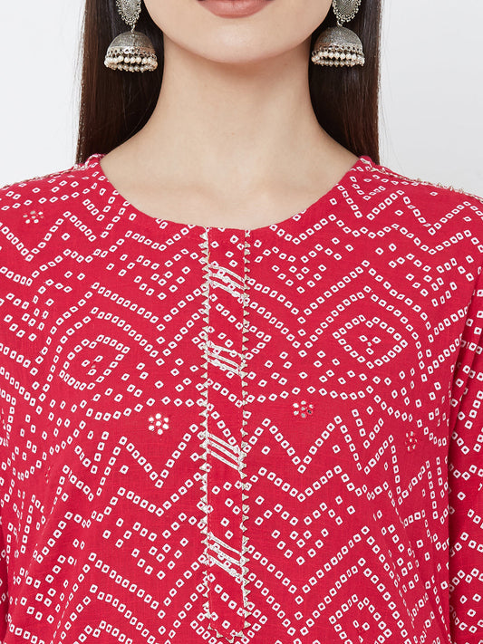 Bandhani Printed & Mirror Embroidered Straight Fit Kurta - Red