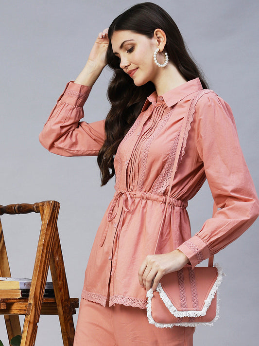 Ethnic Cutwork Embroidered Co-ord Set - Lilac Purple