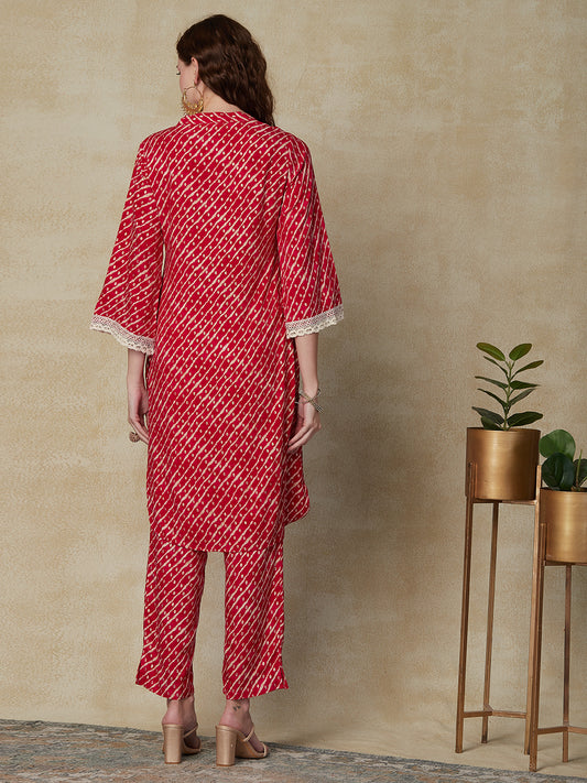 Ethnic Ikat Printed Straight Fit Co-ord Set - Yellow