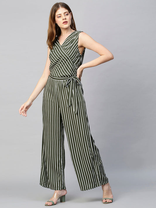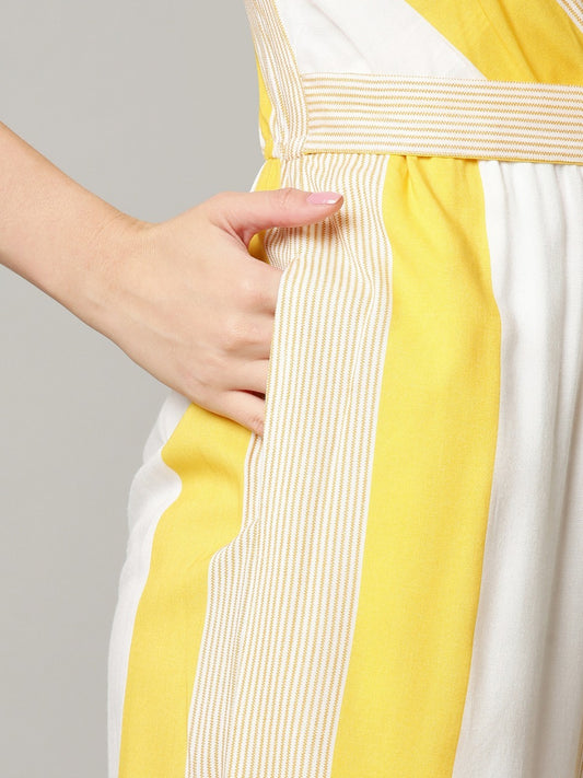 Stripes Printed Straight Fit Jumpsuit with Belt - White