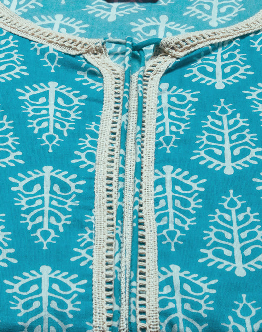 Ethnic Printed Tiered Flared Midi Dress - Turquoise