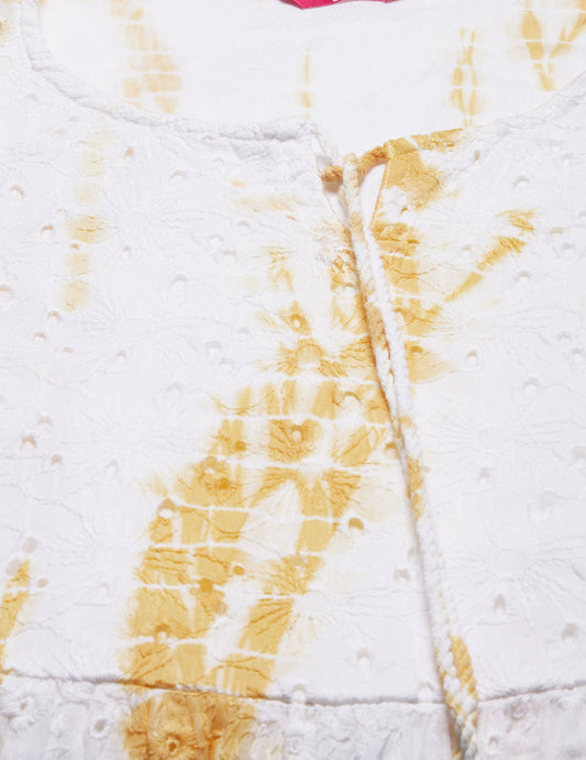 Tie-Dyed Flared Cutwork Midi Dress - White