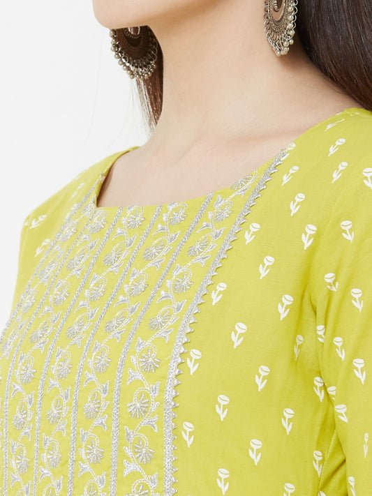 Silver Zari Embroidered & Gota Embellished Multi Panelled Maxi – Chartreuse Green