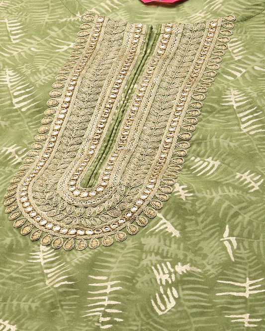 Lehriya Printed Mirror & resham Hand Embroidered Kurta - Sea Green