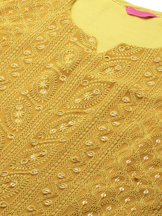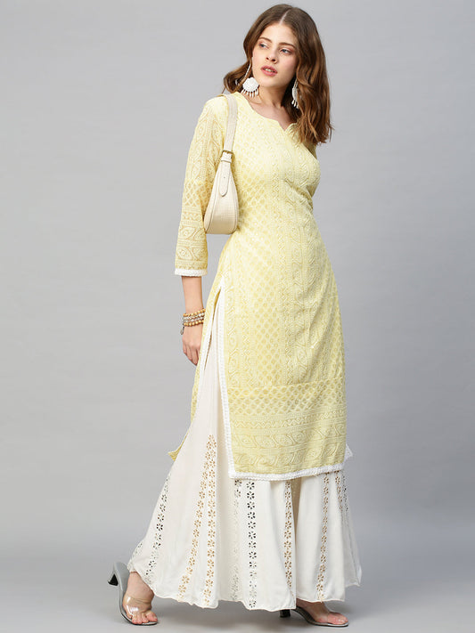 Chikankari Embroidered Straight Fit Kurta - Yellow