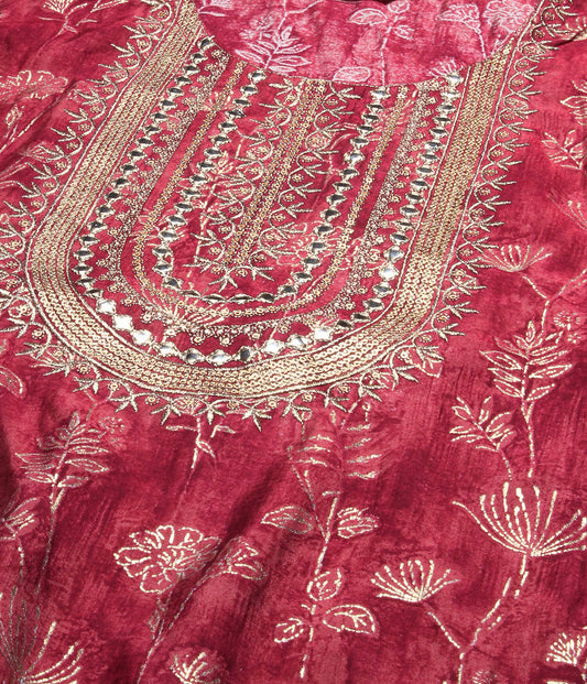Mirror Embroidered & Leheriya Printed Straight Fit Kurta - Magenta Pink