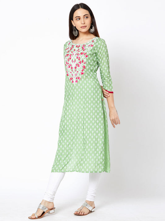 Chikankari Embroidered Straight Kurta - Pastel Green
