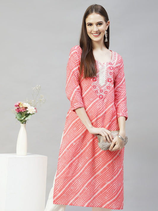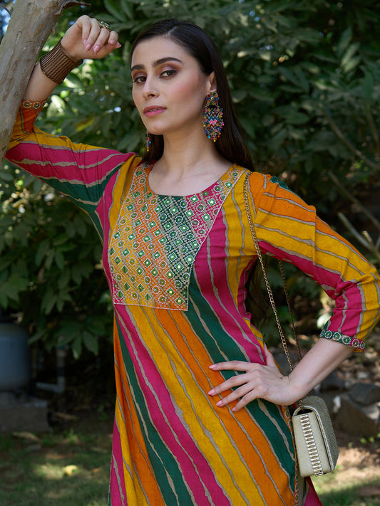 Leheriya Printed & Embroidered Straight Fit Kurta - Multi
