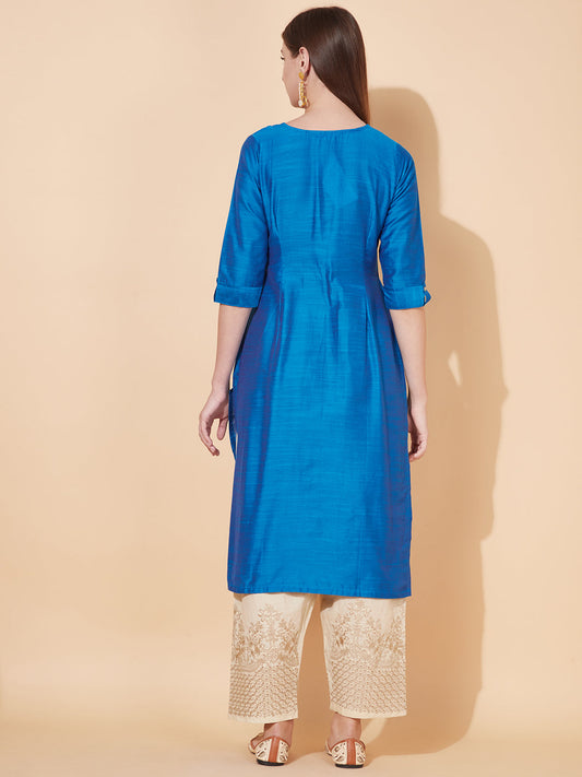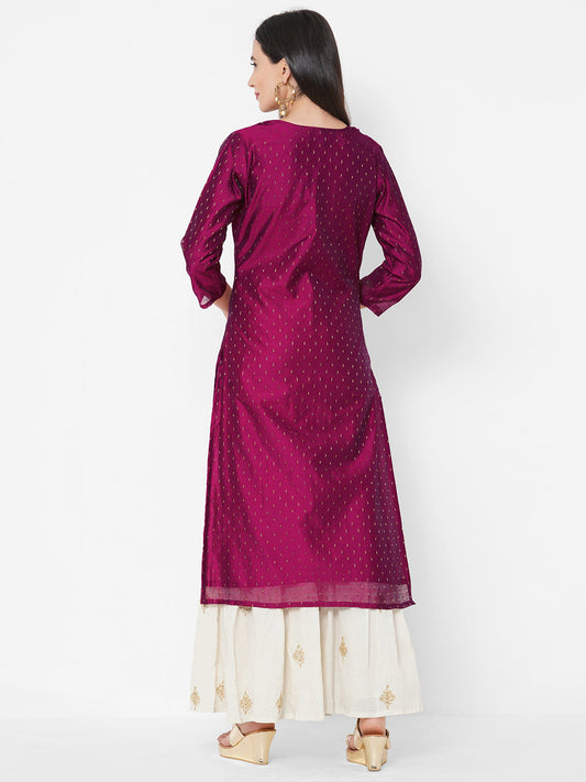 Ethnic Sequin Embellished Straight Kurta - Magenta