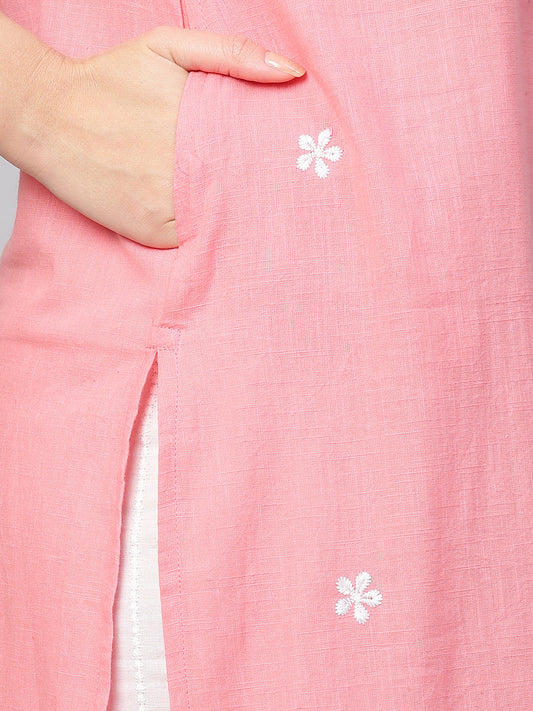 Festive Sequin Embroidered Straight Kurta - Hot Pink
