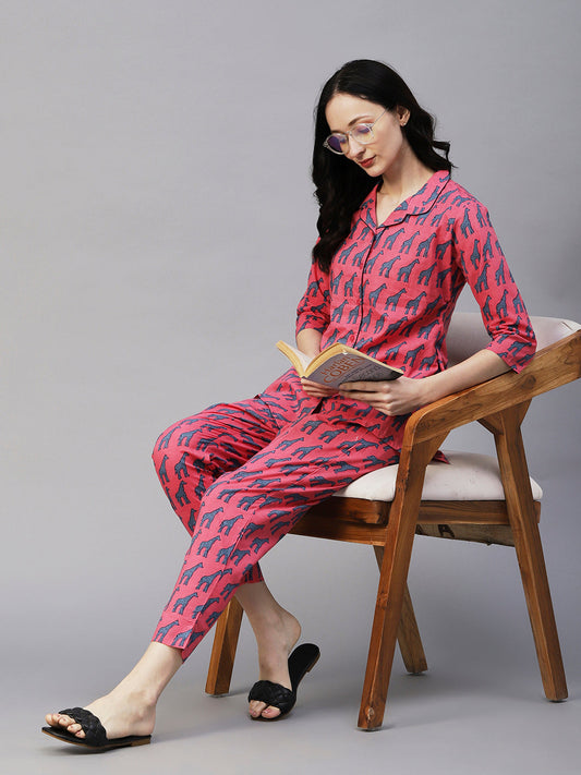 Animal Printed Shirt With Matching Pants Co-ord Set - Pink
