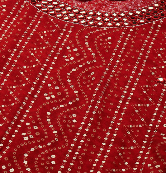 Bandhani Printed & Mirror Embroidered Straight Fit Kurta - Red
