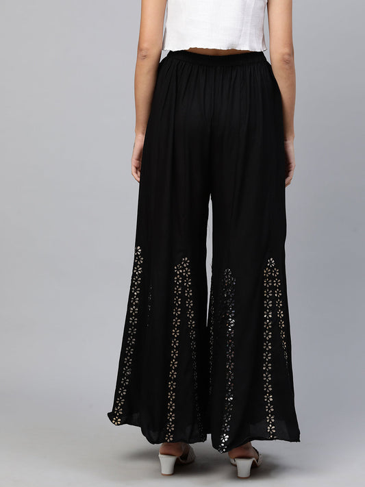 Ethnic Flared Palazzo with Gota Patti Embroidery - Black