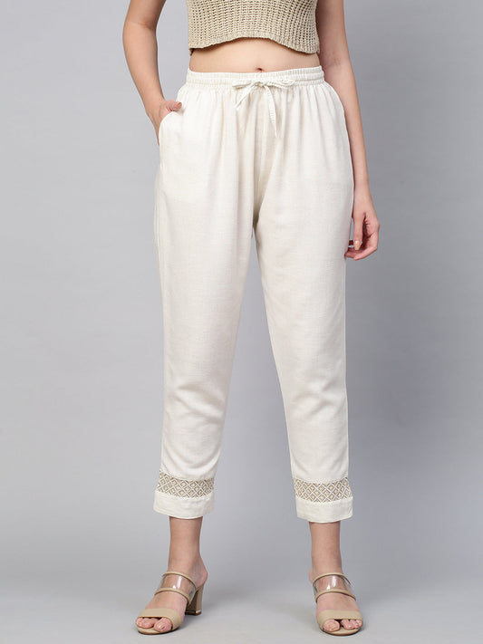 Zari & Thread Embroidered Ankle Pant - Off White