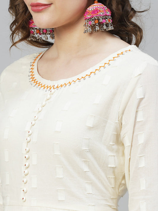 Ethnic Woven Anarkali Kurta with Pants & Dupatta - Off White