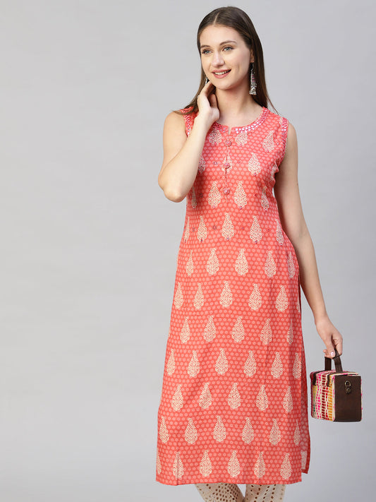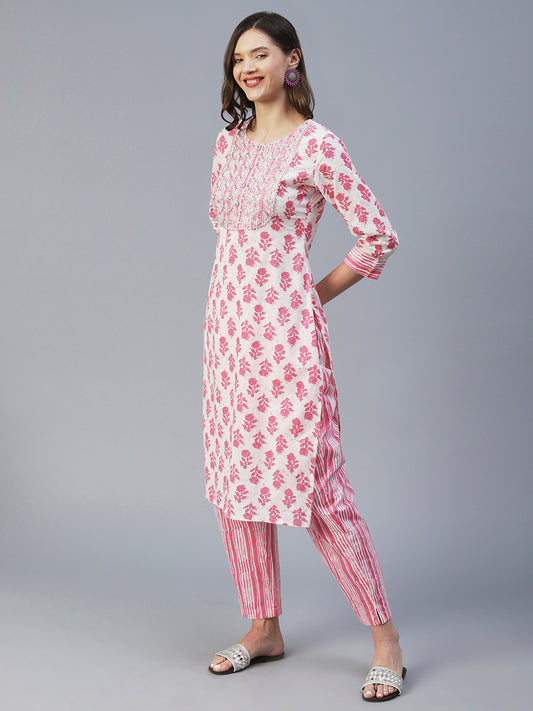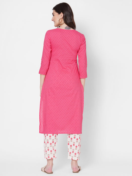 Ethnic Printed Straight Fit Kurta with Pant - Pink