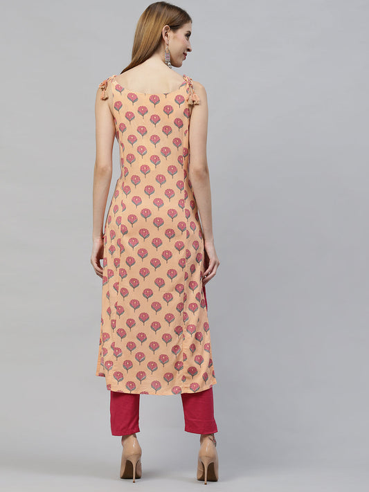 Ethnic Printed & Embroidered Straight Fit Kurta - Peach