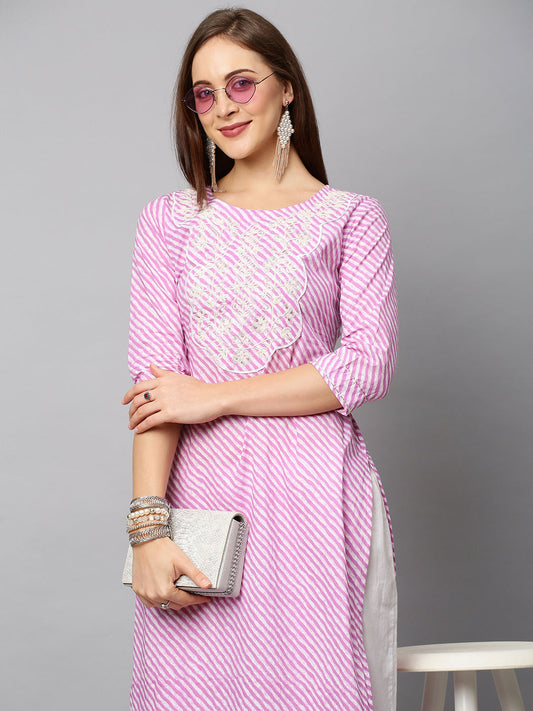 Leheriya Printed & Embroidered Straight Fit Kurta - Purple